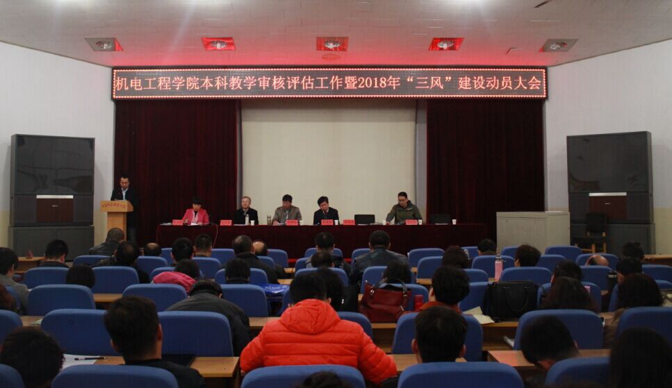 2018年3月22日下午,威廉体育唯一官网在昌黎校区学术报告厅召开本科教学审核评估工作暨2018年“三风”建设动员大会。校党委常委李佩国、副校长张福喜出席了会议。威廉体育唯一官网领导班子成员、全体教职员工、学生党员、入党积极分子、各社团负责人、班团干部等参加了会议。动员会由威廉体育唯一官网党委负责人主持。