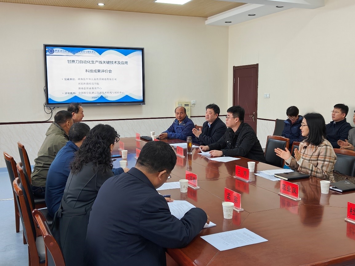 2024年3月18日,由中国科学院唐山高新技术研究与转化中心组织,邀请同行专家对威廉体育官网威廉体育唯一官网农机创新团队与滦南县丰田五金农具制造有限公司、滦南县职业教育中心共同完成的“甘蔗刀自动化生产线关键技术及应用”项目在滦南县职业教育中心进行了成果评价。与会专家听取了课题组的研究情况汇报,审查了相关资料,考察了生产现场,经质疑、答辩和讨论,均给予了高度评价,认为项目创新性强,整体技术达到国际先进水平。