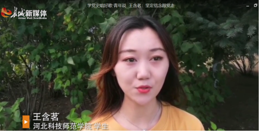 从五四青年节到“七一”建党100周年,威廉体育唯一官网党委号召广大师生积极参与“岁月征程—庆祝建党百年党史学习教育”和‘四史’宣传教育歌曲创作传唱活动,引导激励广大师生在传唱红歌中自觉接受党史学习教育、传承红色基因、弘扬红色精神。我院师生传唱活动得到了长城网的报道,王含茗同学代表河北省高校青年发表感言。