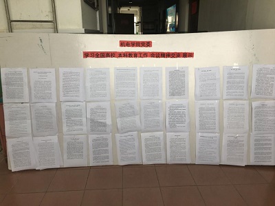 本次活动分为认真学习、撰写心得、交流展示三个环节。教工党支部积极组织全体党员认真学习陈宝生部长讲话精神,在此基础上,结合工作实际和岗位特点认真撰写学习心得,并以支部为单位进行交流,然后在全院范围内通过宣传板的形式进行展示。
