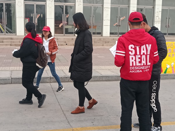 活动中,志愿者们在在教学楼、宿舍、食堂及食堂门口给同学们发放关于勤俭节约,节约用电、用水和珍惜粮食的宣传单,号召同学们从小事做起,杜绝浪费,集签名成公约,将雷锋精神发扬传承。