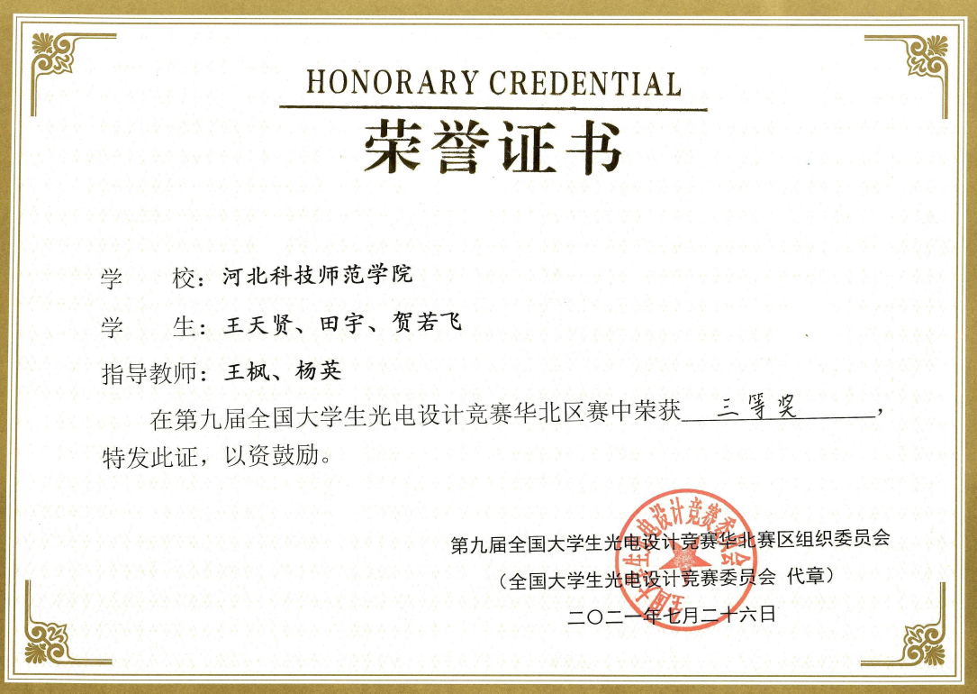 近日,由中国光学协会主办,燕山大学承办的第九届全国大学生光电设计竞赛(华北赛区)在燕山大学举行。来自北京、天津、河北、山西、内蒙古的31所高校的229支队伍共计1033名师生参赛。威廉体育官网威廉体育唯一官网由3名学生组成了1支代表队参加了此次比赛,最后获得集体三等奖一项。