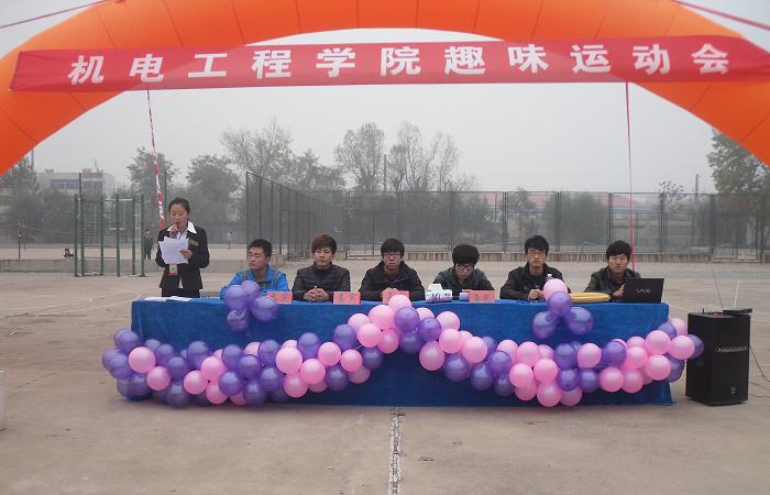 此次趣味运动会主要活动项目有:专业赛拔河、叠人、齐心协力;团体赛六人七足、手足情深、趣味四项;个人赛定点投篮、足球、跳绳。同学们为了给团队争得荣誉,积极参与,使运动在挑战中充满了趣味,趣味中充满了团结。为了彰显个人魅力,各抒其才。此次活动嘉宾有学生会主席夏斌,团委书记王浩森,副主席单林、齐学俊、朱玉鹏、刘兵、栗井岩。参加活动人员有13级机制本、电气本、电子、农机、机制专、电气专、应电、汽修各专业全体学生。