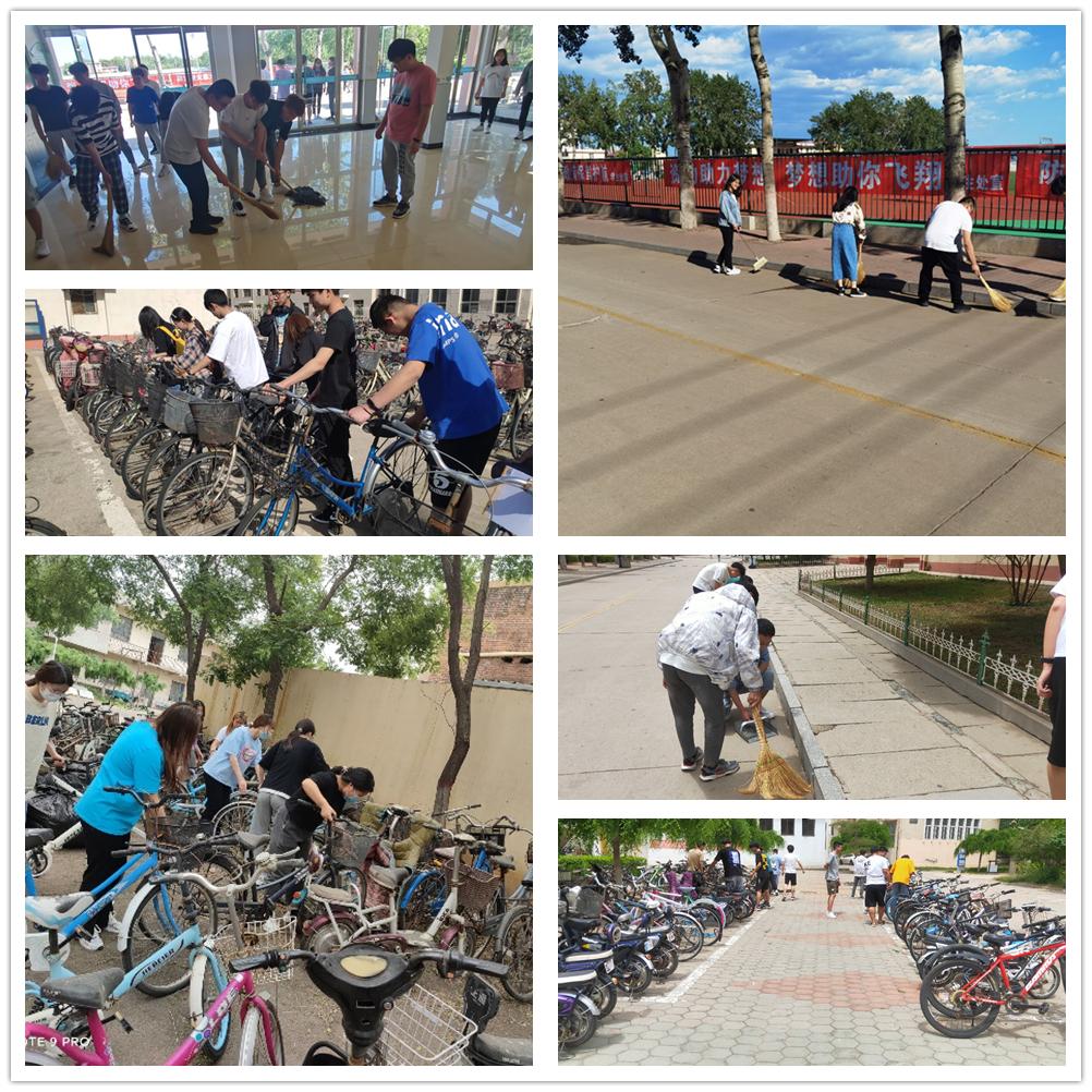 此次活动主要是清洁校园垃圾、整理随意摆放的自行车、打扫实验楼角落垃圾等。在准备好需要的扫帚、垃圾袋、手套等物品后,由各专业负责人带领志愿服务者开展活动,活动共分两个小组,一组到清扫校园主路、各学院实验楼楼道、实验楼角落垃圾,另一组到校园各处摆放错乱的自行车,大家积极主动,仔细清洁校园角落垃圾,将校园杂乱无章的自行车摆放整齐,校园面貌变得整洁文明。
