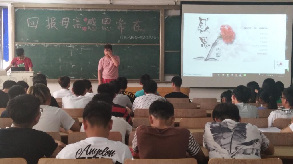 2018年5月13日上午11时,17级机械设计制造及其自动化团支部于主楼B105举办以“回报母亲,感恩常在”为主题的团日活动,本次活动由17级机制全体同学参加。